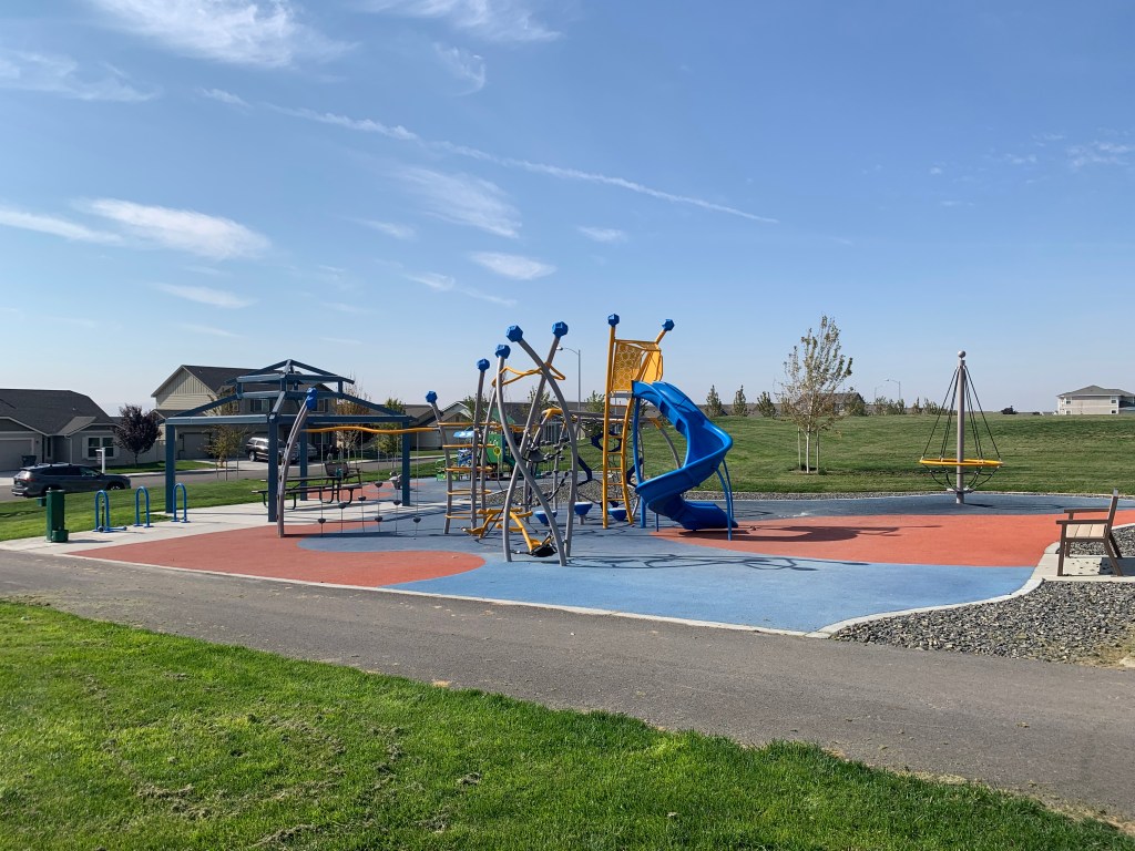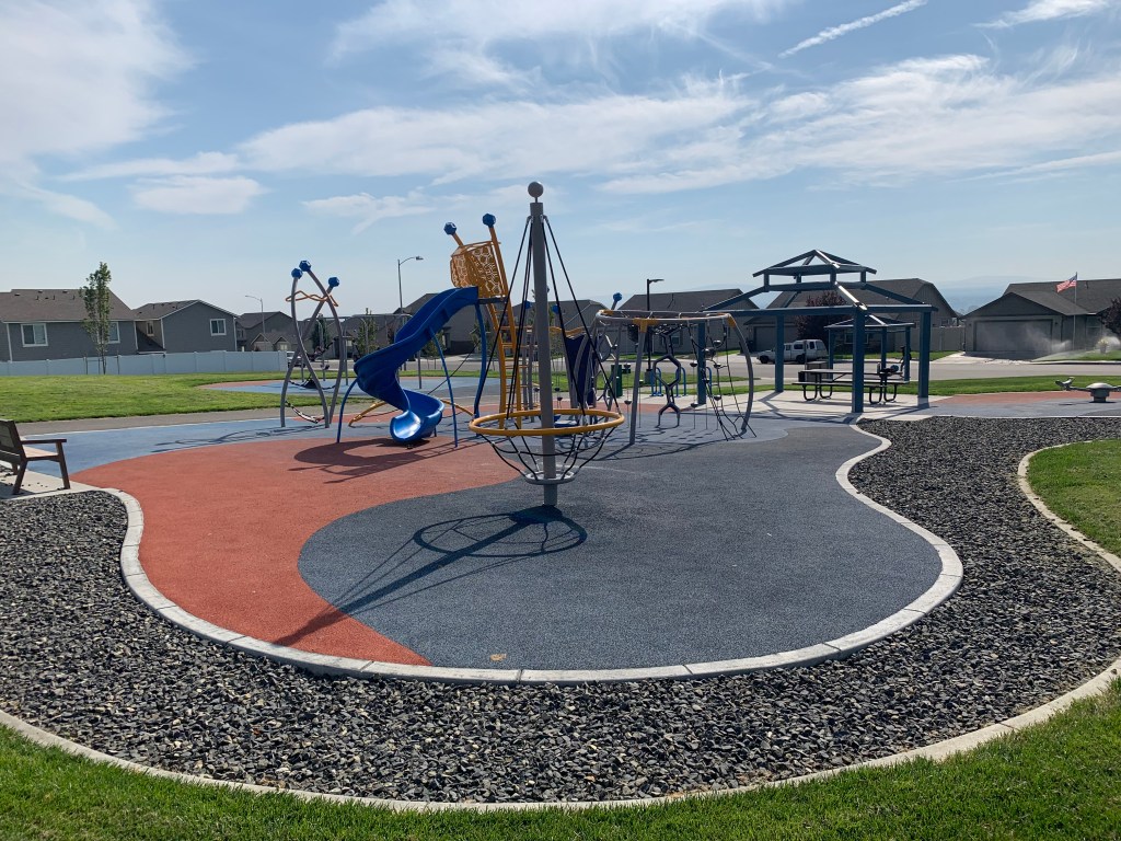 MRDC installed Gametime playground equipment at the newly constructed Chapel Hill Park in Pasco, WA. The new walking path leads the community to a tot playground, 5-12 play equipment with large spiral slide, swings, a climber course, and rope spinner.