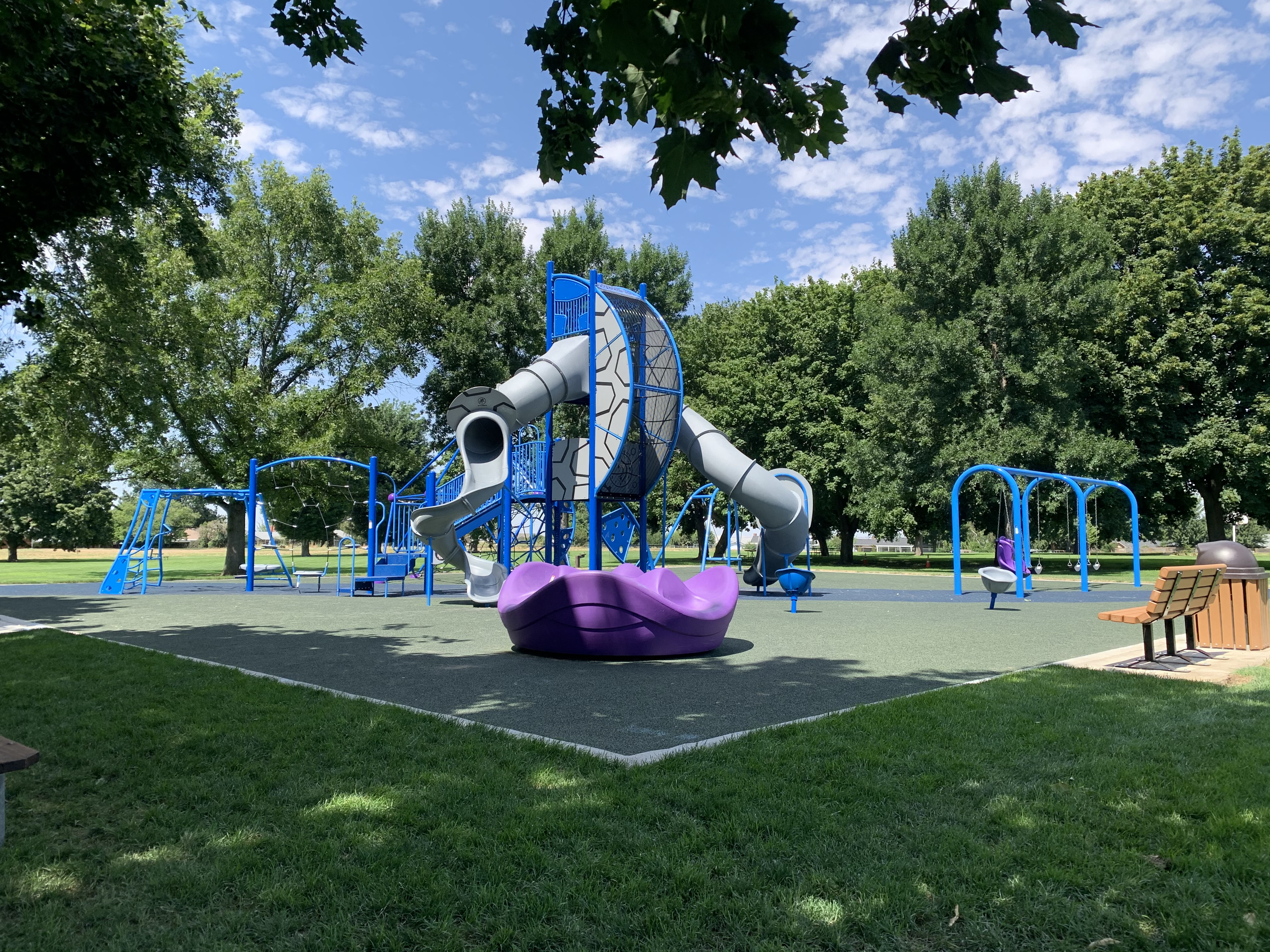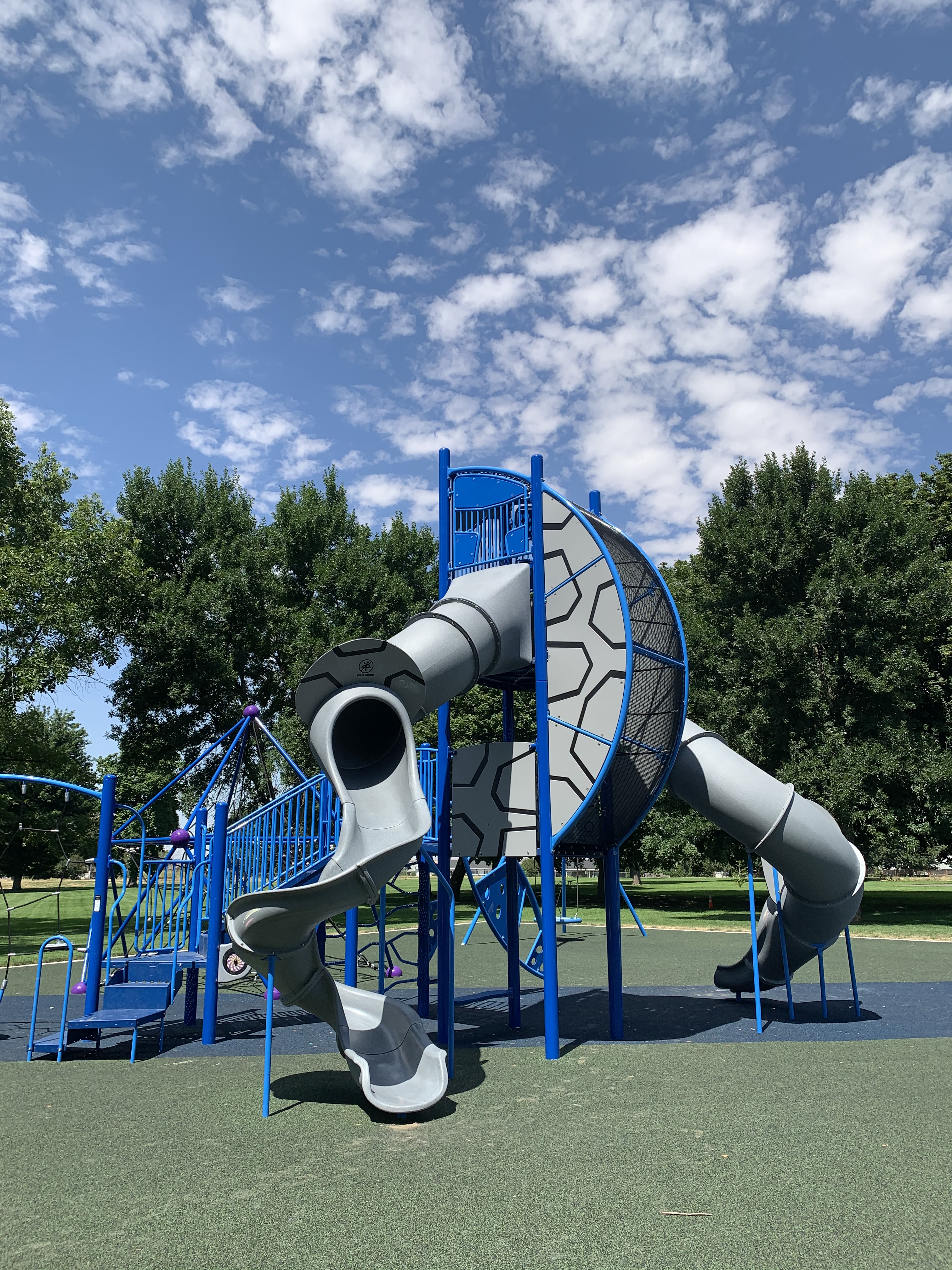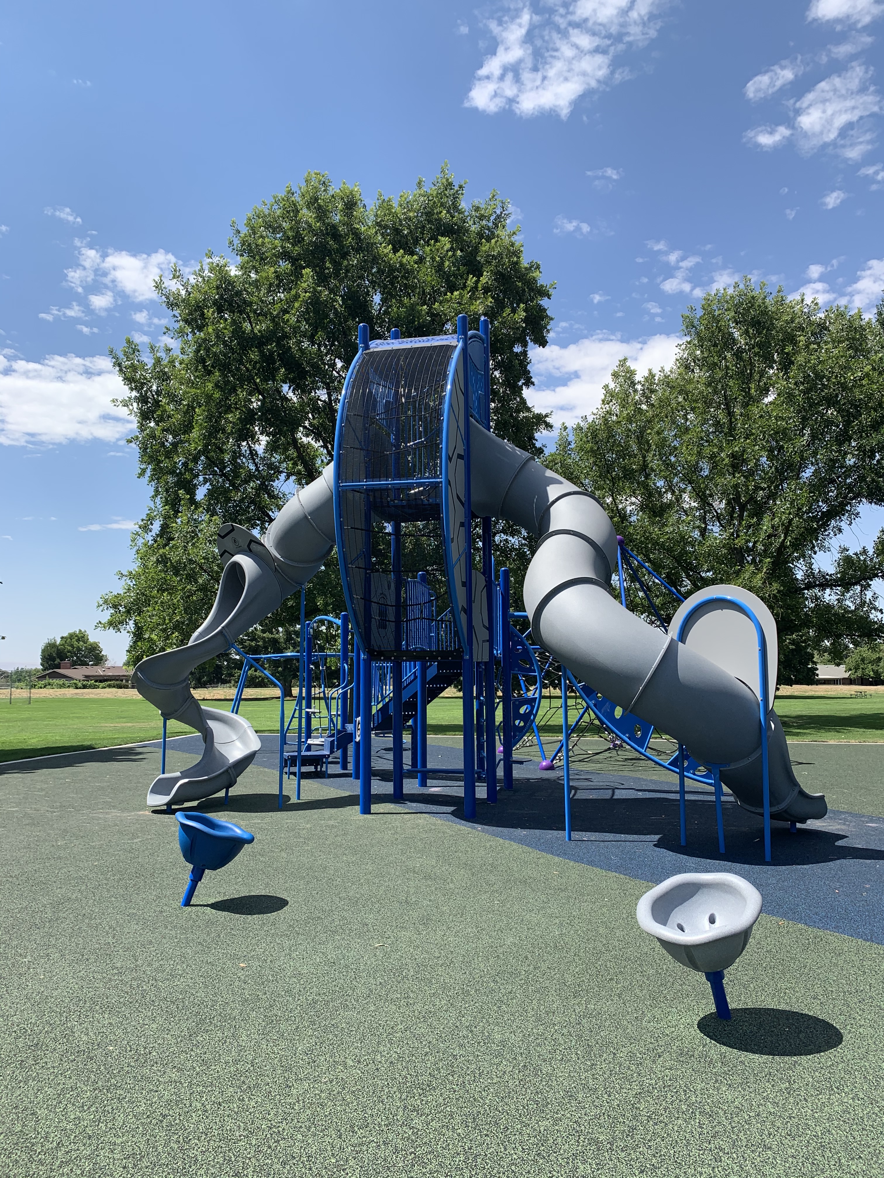Vista Terrace Park is a brand new installation in Walla Walla, WA. Site prep was completed by the City of Walla Walla, and MRDC followed to install Burke playground equipment. The equipment consists of spiral slides, traditional swings, a disc swing, seated spinner cups, a merry-go-round, and two climber domes.