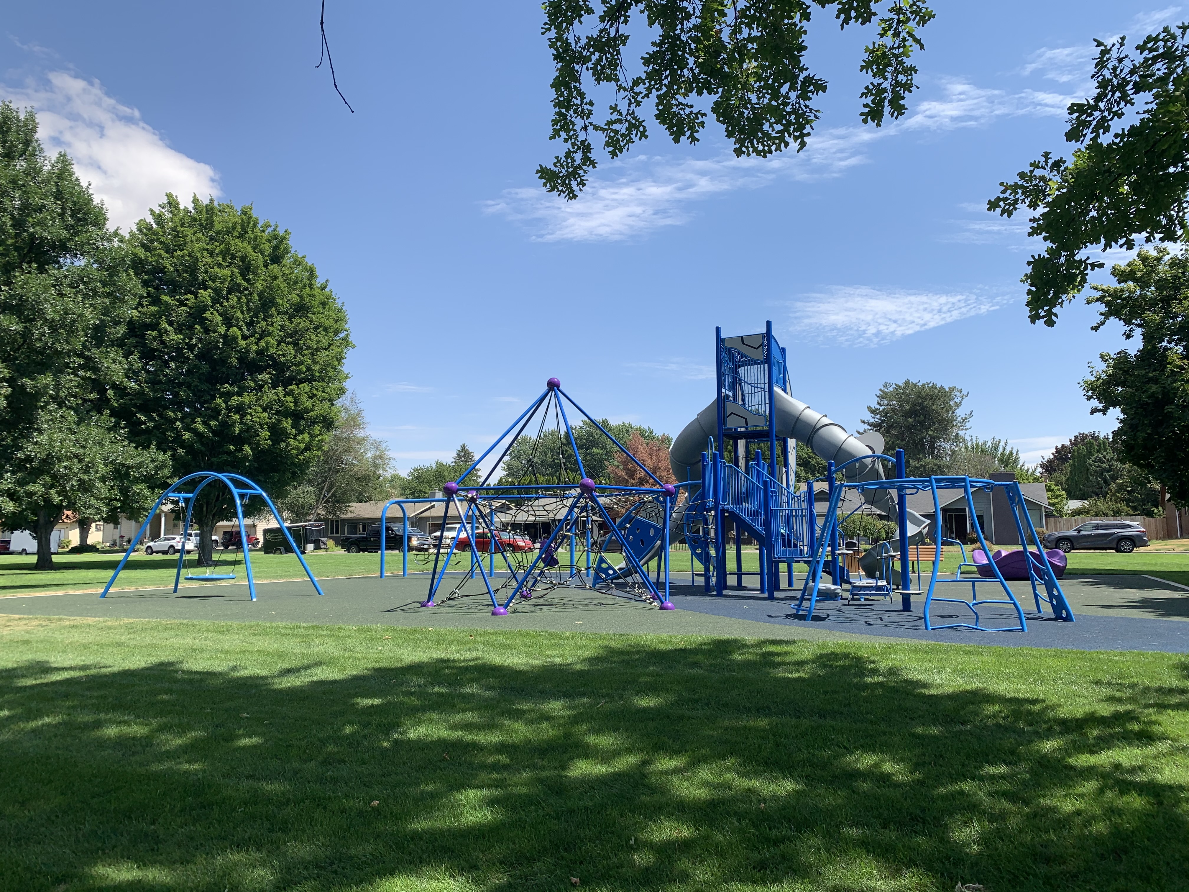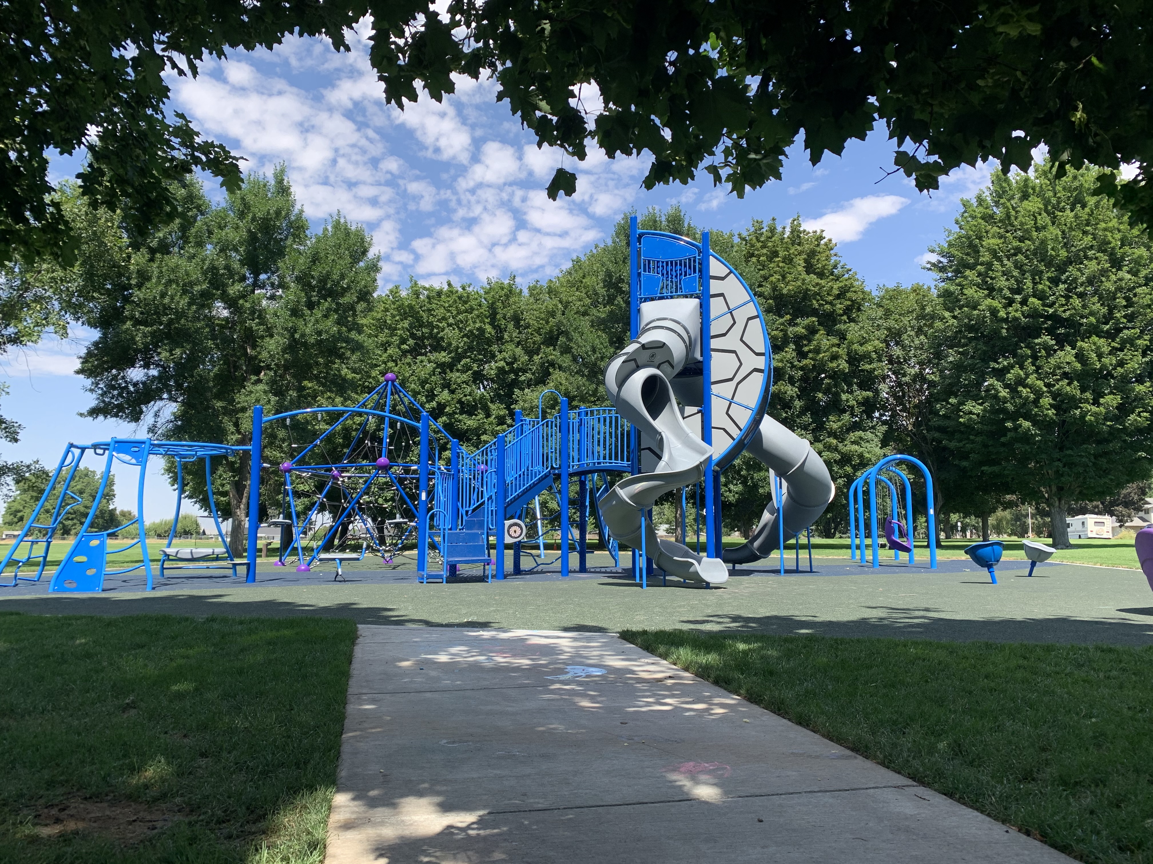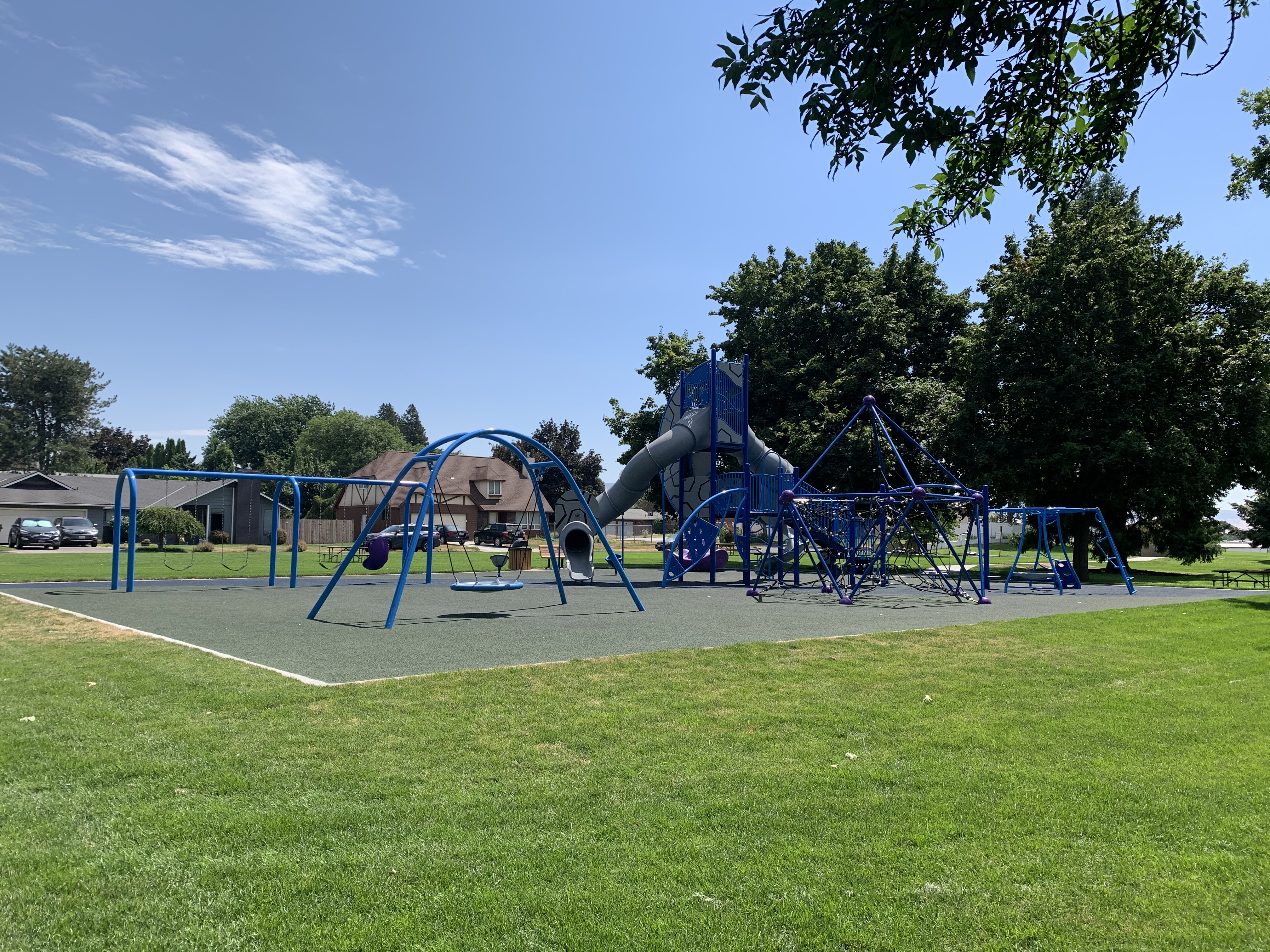 Vista Terrace Park is a brand new installation in Walla Walla, WA. Site prep was completed by the City of Walla Walla, and MRDC followed to install Burke playground equipment. The equipment consists of spiral slides, traditional swings, a disc swing, seated spinner cups, a merry-go-round, and two climber domes.